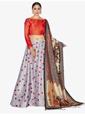 | • | Lehenga | : | Color- Grey / Fabric- Digital Printed Satin |
